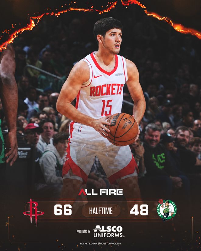 火箭队的杜兰特上半场得到20分和4个篮板,申京、史密斯和汤普森各得到6分;凯尔特人队的布朗得到10分和5次助攻,奎塔得到9分。